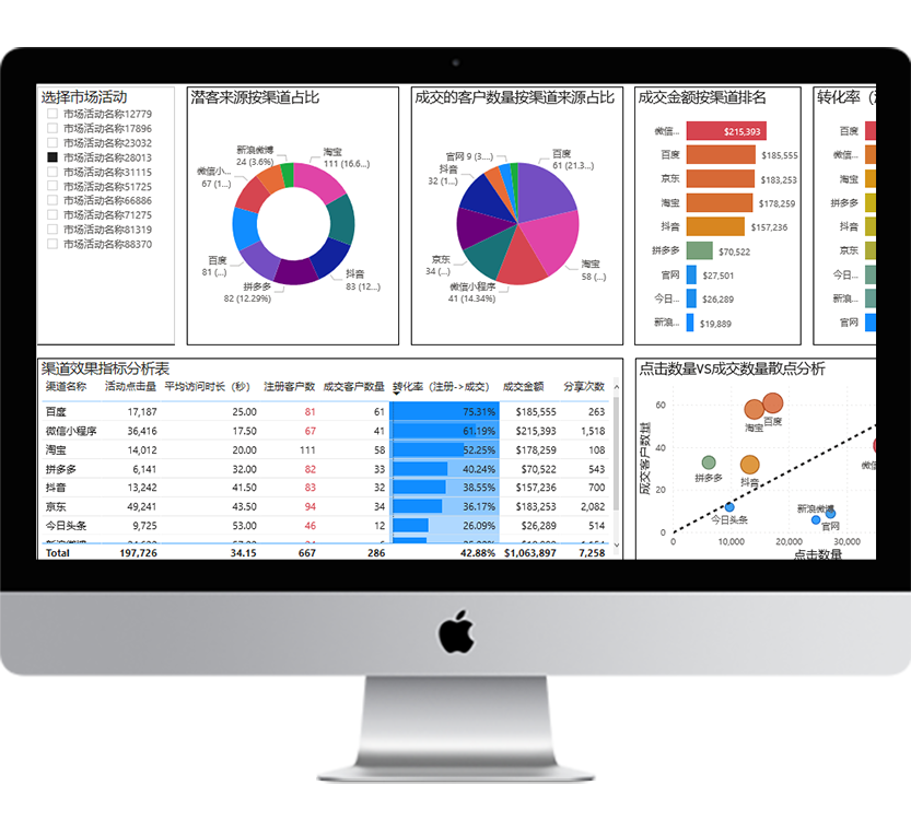 • 内置市场、销售、渠道、服务等各行业通用数据分析模型,快速提升企业数据分析决策能力